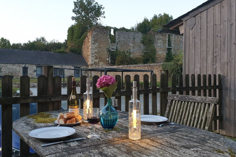 Die Flaschenleuchte ist unten bis zum Deckel wasserdicht und von oben regenfest. Aus Sicherheitsgründen darf die Leuchte nicht in Getränke