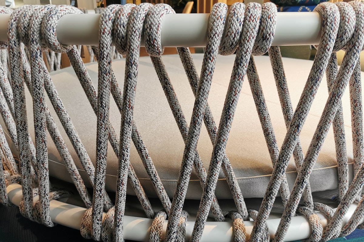 Die von Patricia Urquiola designte Cassina Outdoor Lounge Trampoline vereint Komfort und Stil in einem außergewöhnlichen Möbelstück. Inspiriert von Grönlands Trampolins, besticht sie durch einen robusten Metallrahmen, handgeflochtene Seile und wasserabweisenden Stoff.