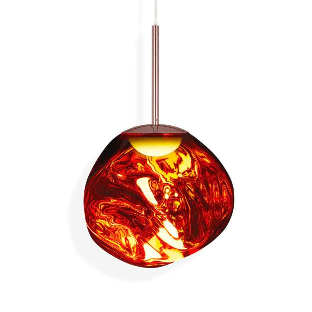 Melt ist eine wunderschön verzerrte Pendelleuchte in einem modernen Finish. Diese Deckenleuchte von Tom Dixon strahlt ein attraktives, leicht halluzinogenes Licht aus und erzeugt im eingeschalteten Zustand einen faszinierenden Effekt aus schmelzendem, mundgeblasenem Glas und im ausgeschalteten Zustand einen Hochglanz-Effekt. Hergestellt in Deutschland unter Verwendung einer High-Tech-Fertigungstechnik, um die perfekte geschmolzene Kugel zu erreichen.